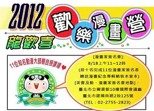 去年本協會與中崙漫畫圖書館合辦的“2008動漫夏嚇叫”夏令營活動報名第3日即超出預算40人員額,經中崙漫畫圖書館姜主任與本協會協調,雖囿於場地受限,但基於宣傳推廣的立場而開放了近60名學員上課…當時姜主任即期望協會今年能再企畫夏令營活動!